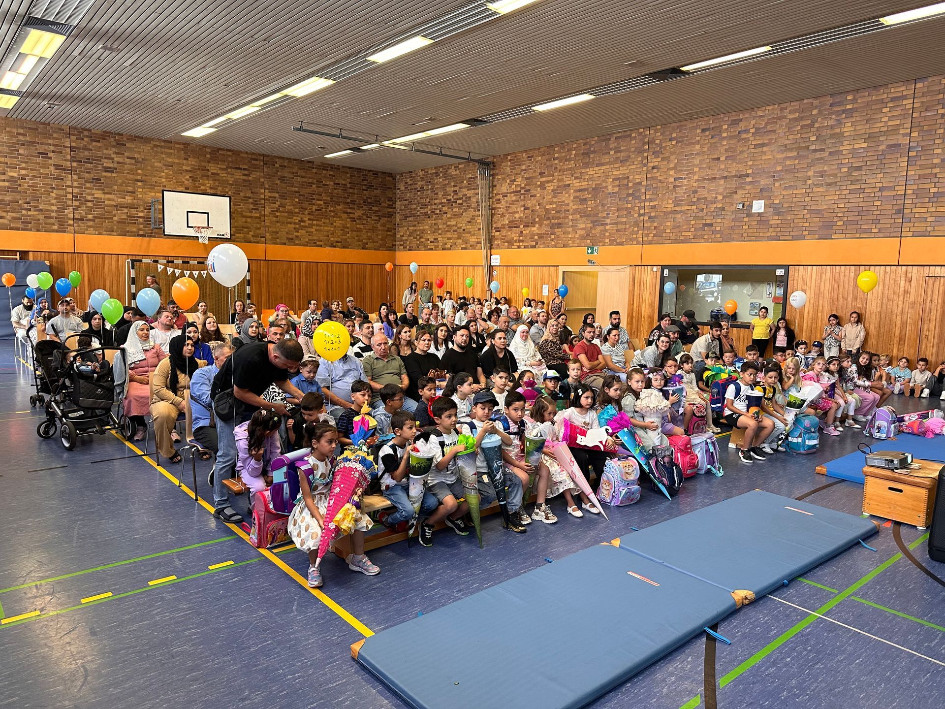 Am 18.08.25 fand an unserer Schule die Einschulungsfeier für die neuen Erstklässlerinnen und Erstklässler statt. Insgesamt wurden in diesem Jahr rund 100 Kinder eingeschult. Sie bilden mir ihren Klassenlehrerinnen Frau Abu Eish, Frau Braun-Lellig, Frau Rommelfanger, Frau Daneluzzi und Frau Schulien das neue Erstklässlerband.