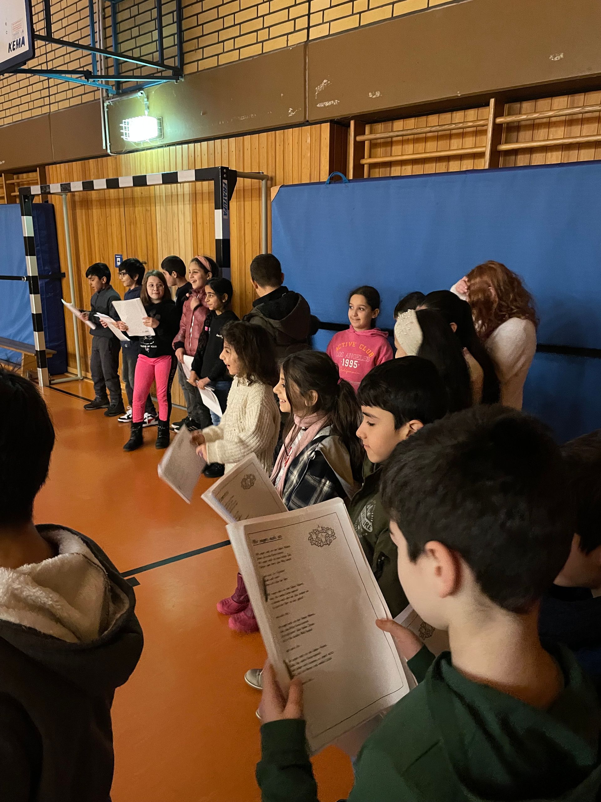 În fiecare luni, în timpul Adventului, mergeam la sală imediat după micul dejun. Toți elevii de clasa a treia și a patra s-au adunat acolo și am cântat împreună colinde de Crăciun pe care le exersam anterior în clasă.
